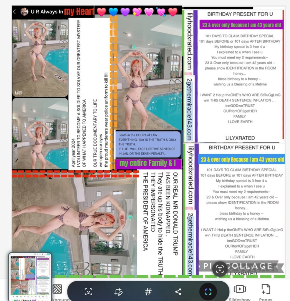 please do not hesitate to ask about my birthday special.. Life is our Circle ⭕️ of Love … I been a bless child all my life .. til today I’m a bless homeless !! The reason why the bad people force me to be homeless .. HONESTLY TRUTH IM TOO GOOD TO BE TRUE .. they try every wicked way possible to intentionally harm me every worst scenario … would you believe in year 2021 .. THEY TRY TO SENTENCE ME LIFE TIME SENTENCE IN JAIL … THEY SAY I ASSAULT A POLICE OFFICER .. it was actually the other way around = THE POLICE OFFICER”s ASSULT ME … I believe it was MARCH TENTH YEAR 2021 .. MARCH 10,2021 ..y resident stay was in DENCER COLORADO .. I return to California for my son Birthday .. I happened to go out with my Friends .. LONG STORY SHORT .. I believe they drugs my drinks or food .. ALL I REMEMBER WAS SINGING IN STAGE FOR MY FRIEND BIRTHDAY… out of the blue MY GIRLFRIEND TELL ME LILY .. Lily .. LILY wake up .. let go inside my house & SLEEP .. I woke up in shocked .. why am I laying here ? What just happened to me ?? I said no I went outside .. a man say I give u 5 minutes to wait home .. ONCE I TURN MY HEAD .. HE WAS FATAL FATALITY KICK IN THE BACK .., I sincerely thought I die … when I woke up again I was in jail … I was surprised I was still alive .. YOU WILL MEVER BELIEVE THIS = the OUTFIT I WORE TO THE BIRTHDAY PARTY WAS CHANGE TO A TOTALLY DIFFERENT OUTFIT .. once i was release .. I flew back to DENVER COLORADO.. I call ☎️ & ask what my citation was charge for … the women in the police department answer I assaulted a police officer’… I oath in the COURT OF LAW .. EveryThing I say is the TRUTH & only the TRUTH .. IF I LIE I WILL FACE LIFETIME SENTENCE IN JAIL OR THE DEATH PENALTY.. my entire FAMILY & I !! Thank you ‘my EARTH FOR ALWAYS LOVING ME .. saving ME FROM ALL THESE VICIOUS MONSTERS WHO TRY EVERY WICKED SABOTAGE TO KILL ME EVERY WICKED WAY POSSIBLE…